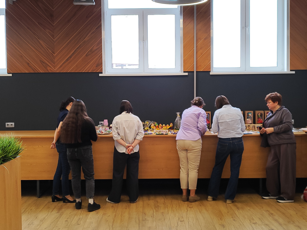 Сотрудники офиса познакомились с прекрасными предметами декоративно-прикладного искусства: изысканными расписными яйцами, милыми игрушками, оригинальным текстилем и ароматными свечами, каждая из которых была создана с особой заботой и вниманием к деталям.